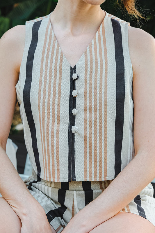 LOLA Striped Crop Top – Navy, White & Sand Cotton | Handmade in Portugal | Size M