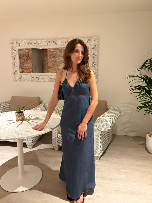 Women’s NINA Dress – 100% Navy Blue Linen | Handmade in Portugal | Size M (also fits S)